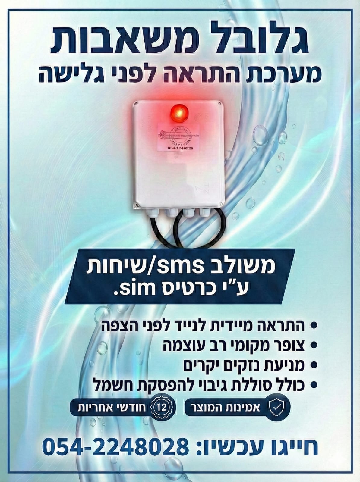 מערכת ההתראה לפני גלישה של גלובל משאבות היא היחידה מסוגה בישראל: